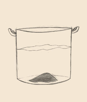 | 1. Executar o procedimento de whirlpool (redemoinho) e aguardar mais ou menos 20min. O trub será concentrado no centro da panela. |